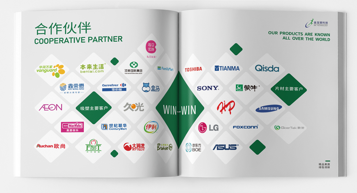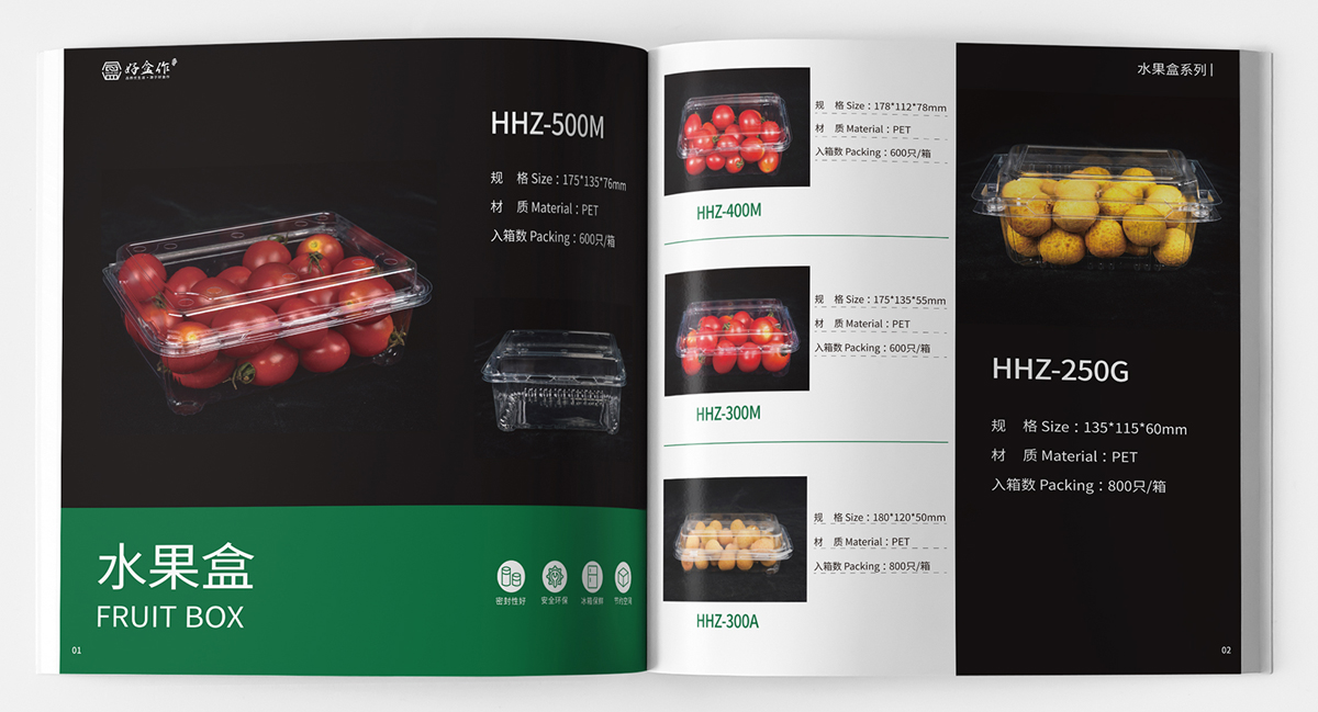 品牌介紹:蘇州金寶麗包裝部門,專注于PET生鮮包裝的研發(fā)、生產(chǎn)、營銷于一體的現(xiàn)代化運營模式,產(chǎn)品主要包括各種水果盒、沙拉盒、果切盒、禽蛋盒、生鮮托盤等視頻包裝容器,自主品牌“好盒作”全新全意為客戶提供一站式生鮮包裝的解決方案,畫冊設計風格整體簡潔大氣、黑色底更好突出透明盒的品質。