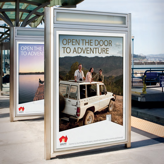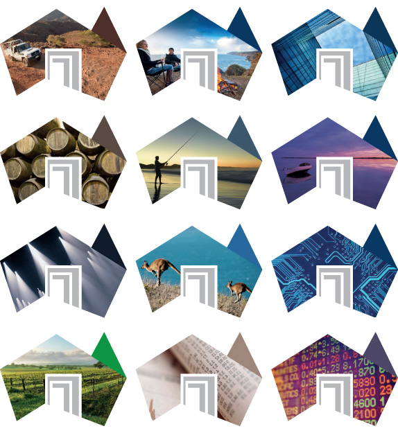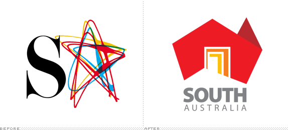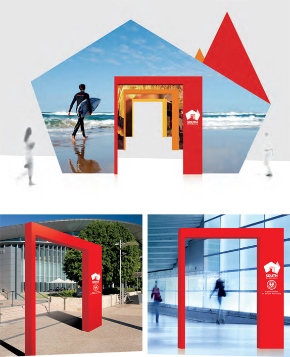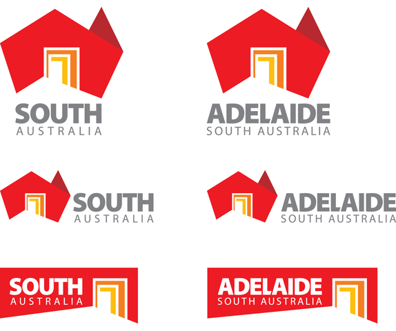 新Logo由澳大利亞地圖的形狀衍生而成,紅色澳洲地圖圖標上的敞開調黃色門的位置正好展現了南澳州是整個國家的中心門口的位置。這是一個多形態的標識,它可以應用于各種的形式,由不同圖案的窗口變成了另一圖形的門。