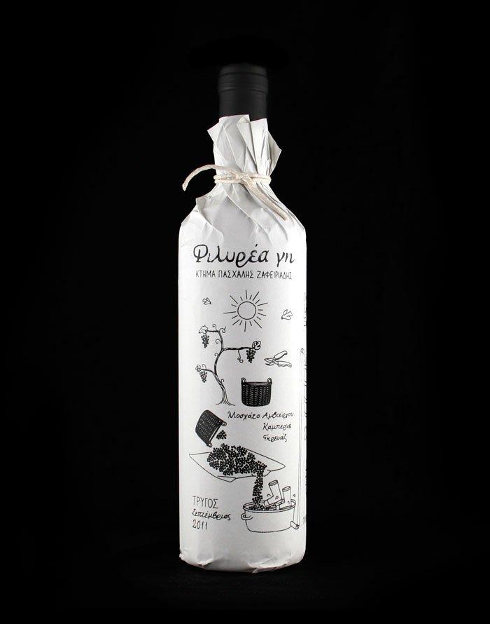 用涂鴉和絲印來賦予酒瓶的包裝一種手作的感覺,因為這是一瓶家庭手工制作的酒,希臘的設計師Zafeiriadis Christos設計。