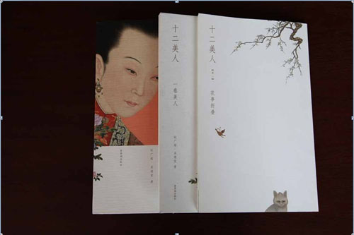 《十二美人》(紫禁城出版社) 風格靜謐而舒展,美人嫻靜的形貌與品性得到充分表現(xiàn);同一頁面上形成動靜結(jié)合的設(shè)計感,而留白成為設(shè)計的中心;封面與封套有機地融為一體,相同的元素在多處形成呼應(yīng);兩函而一匣的安排既闡釋古典的主題,又代表了前衛(wèi)的設(shè)計潮流;此書可稱為書籍設(shè)計的杰作