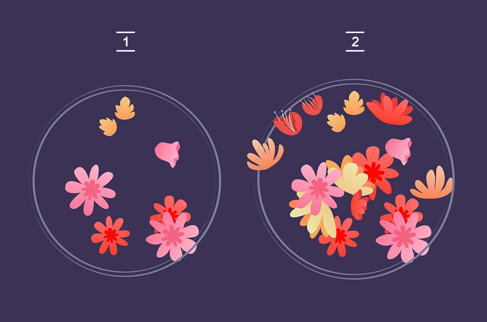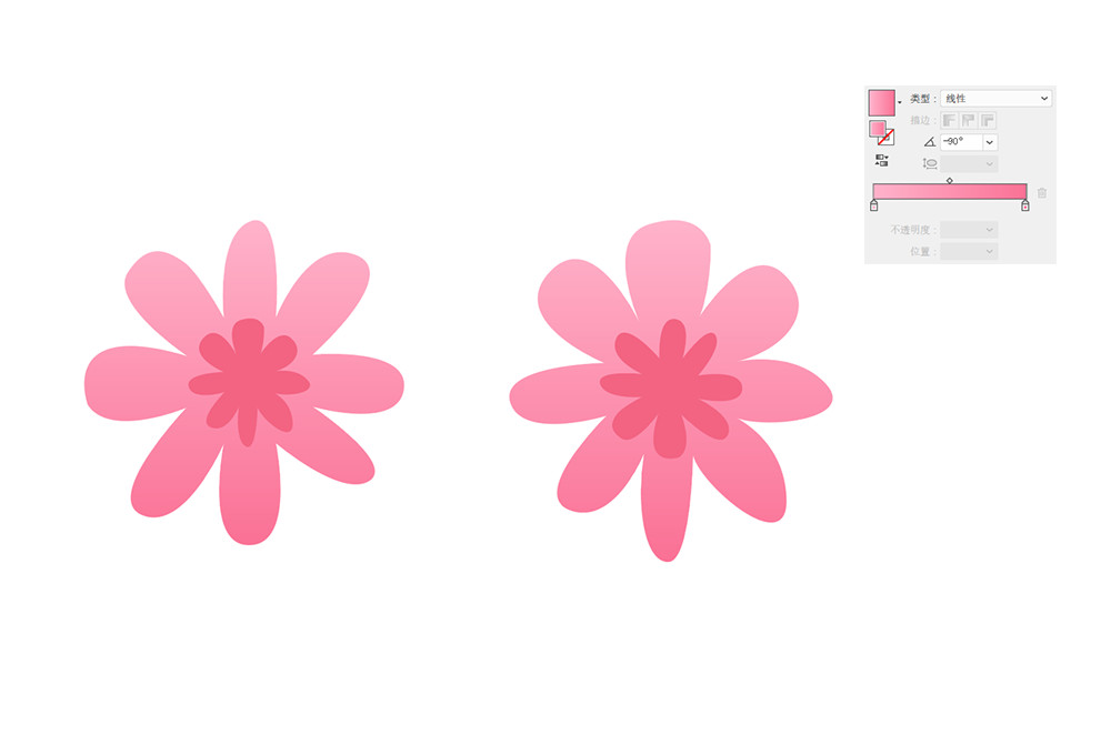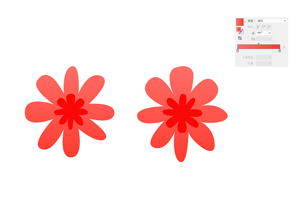 接下讓我們安排橙紅色的花朵,將粉色的兩朵花朵進行復制并更改其配色,就能獲得新的花朵素材。