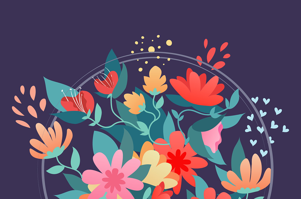 嵌入文字可以說也是一項很繁瑣的工序,你需要把文字對象不斷來回拆分重組,利用層次關系甚至是形狀生成工具進行細微的調整。總的來說,你要讓整個畫面看上去“合理”。文字遮擋的部分隱沒于花束中,空間上的層次要分明。