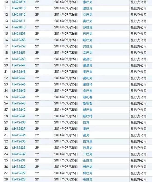 最變態的絕對是星巴克公司了,把可能用到的名字都給注冊了一遍,有錢任性!