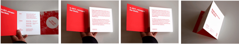 我經常看到很多三折頁的設計被限制于已經設定好的折頁內。忘記它們,然后用一個色彩與圖形的組合,創造一個橫跨三折頁的迷人設計。
