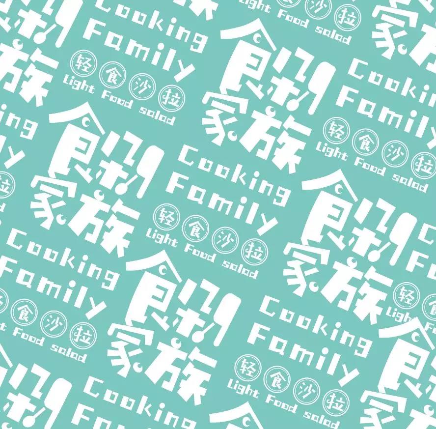 食剁家族。品牌LOGO以純白色作為主色調,在品牌的字體中通過筆畫的變化,最有趣的是"剁"字中將字形分解成刀和勺子的形狀,將"點"元素轉化成橢圓形,并在中間挖了個圓洞,體現出品牌可愛的調性。將品牌中英文的LOGO元素鋪滿整個畫面,通過出邊的版式設計搭配斜排版處理,展示了可愛、小清新的主題。