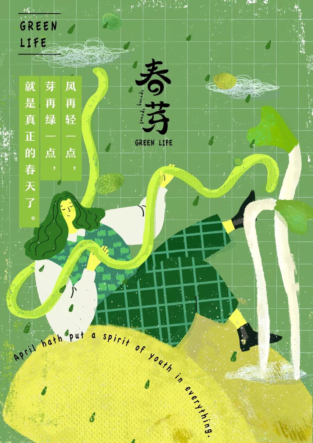 春芽品牌。品牌以充滿春天氣息的綠色為主色調,放眼過去是給人以舒服的感覺。黑色的豎型排版LOGO,使得畫面簡約而整潔。