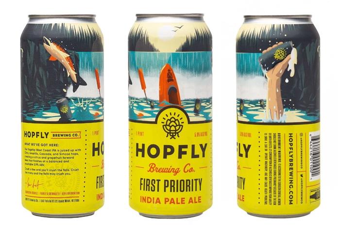 同樣是啤酒,來自北卡羅來納州的啤酒廠的品牌Hopfly,體現的不是詩意,而是通過插畫來表現南方的冒險精神。