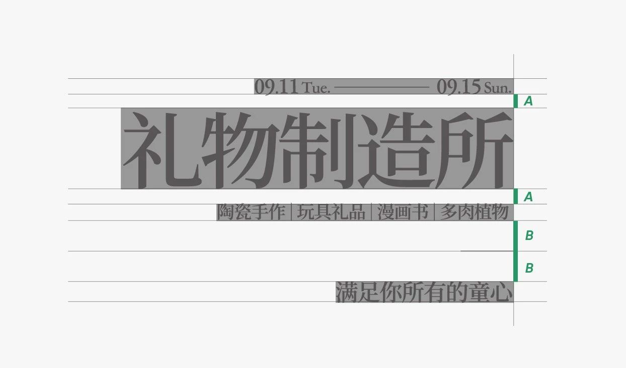 那么需要注意的第二個部分是,文字的長度一般來說,呈現“短長短”的排布節奏,在視覺上是較為舒服的。